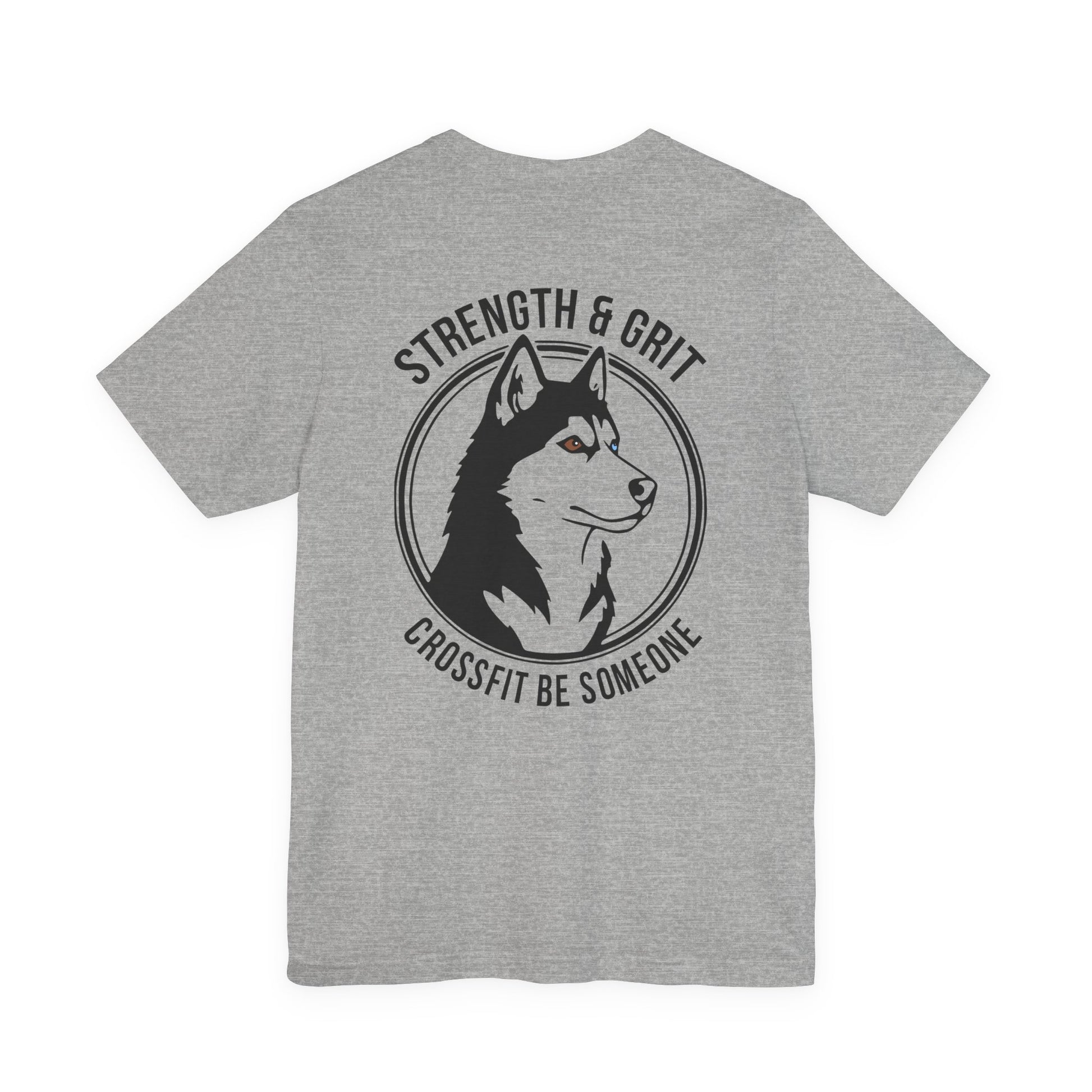 This lightweight jersey tee brings quiet confidence to training days and downtime. A subtle chest sketch of a focused husky meets a bold back emblem that reads “Strength & Grit” — the design speaks to steady commitment rather than loud flash. Wear it to the box, on morning runs, or layered under a hoodie between sets. The slim retail fit and breathable Airlume cotton keep movement free and cool; shoulder tape and side seams hold the shape through frequent washes. It feels lived-in from the first wear but built to last.